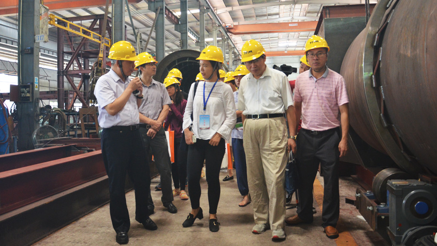 記者團走進鐵拓機械生產(chǎn)車間,探訪大型瀝青攪拌設(shè)備的制造流程和工藝。